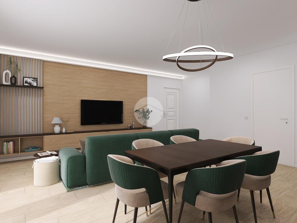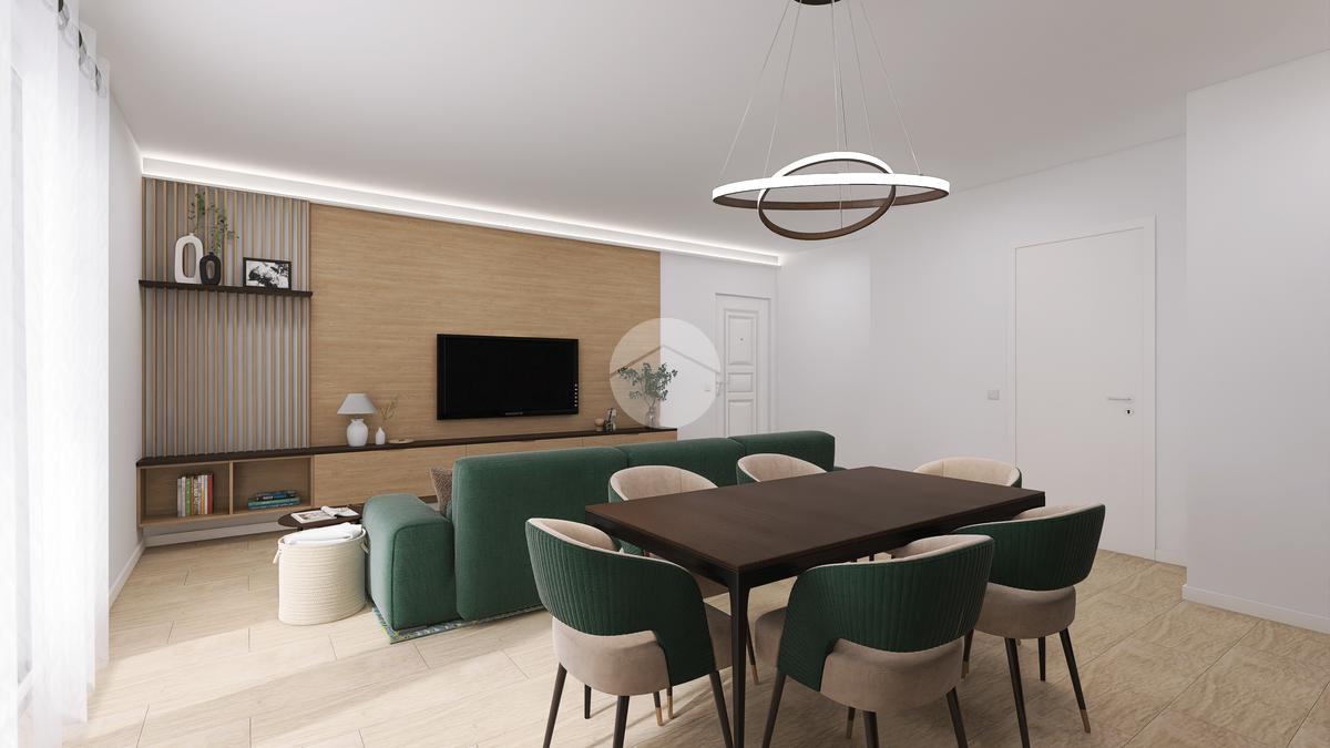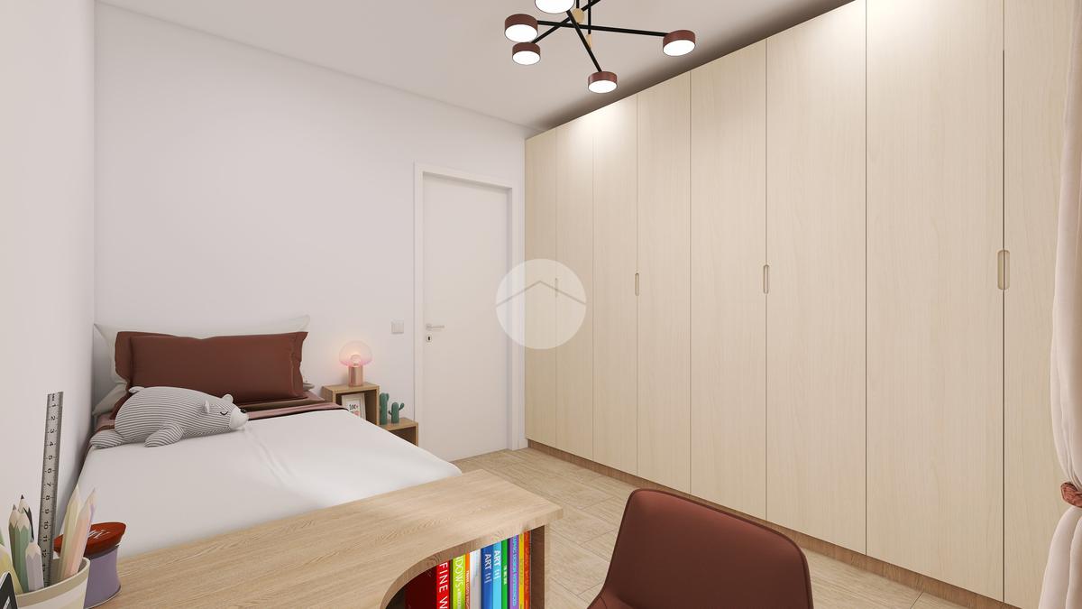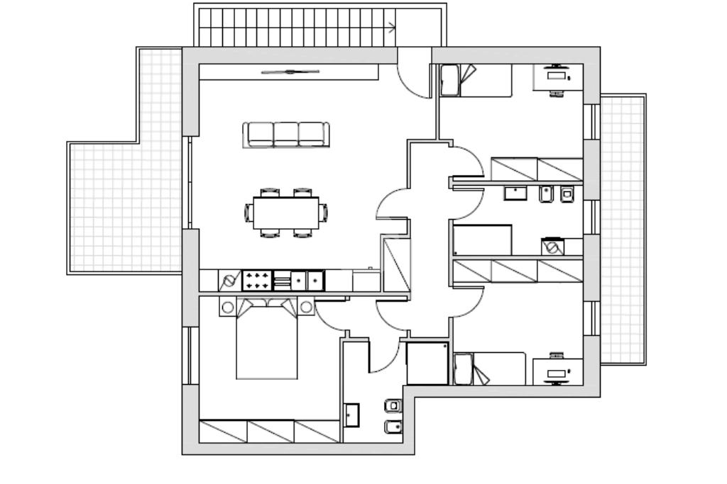 L’appartamento sorge al primo piano e si compone di una zona giorno con angolo cottura e accesso diretto ad una terrazza abitabile, una camera matrimoniale, due camere doppie con balcone, due bagni con doccia e un box auto doppio.